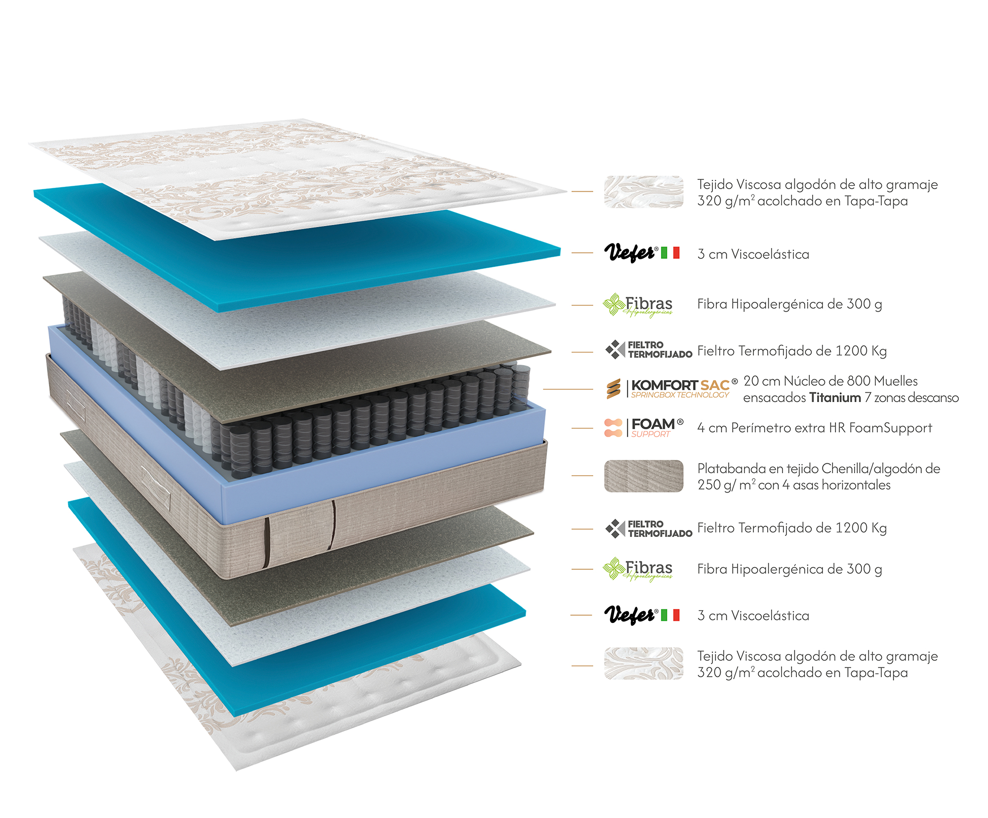 La estructura interna del modelo Heroes ha sido configurada para proporcionar un alivio de presión completo. En este sentido, cada elemento del núcleo contribuye a mejorar la estabilidad y el confort durante el descanso.
