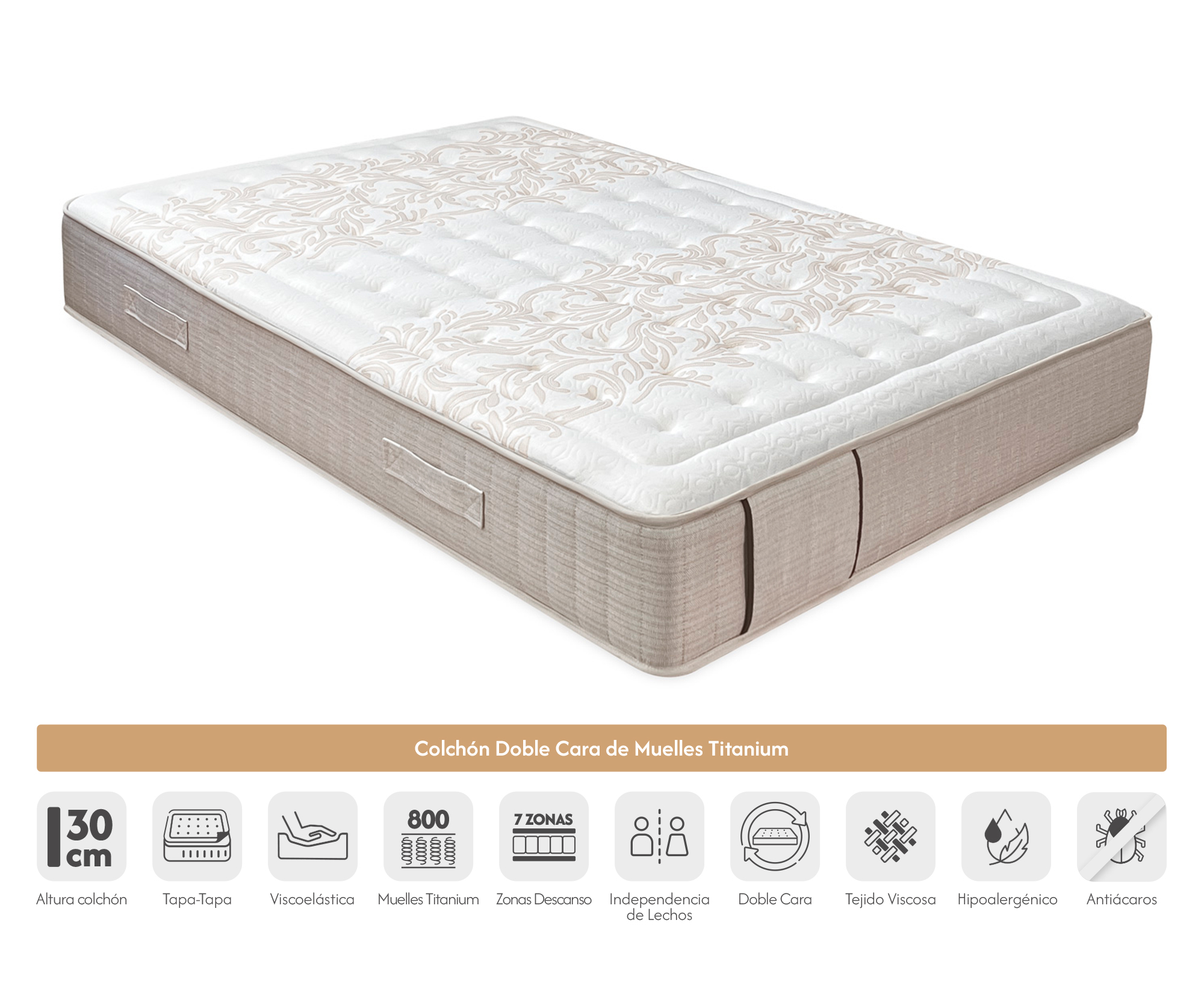 Este modelo destaca por su equilibrio entre firmeza técnica y suavidad superficial. Además, su sistema de muelles Titanium está pensado para quienes buscan un colchón duradero que mantenga sus propiedades estructurales durante más tiempo. En definitiva, sus 7 zonas de confort permiten que cada parte del cuerpo reciba el soporte adecuado, transformando cada noche en una experiencia de descanso completa.