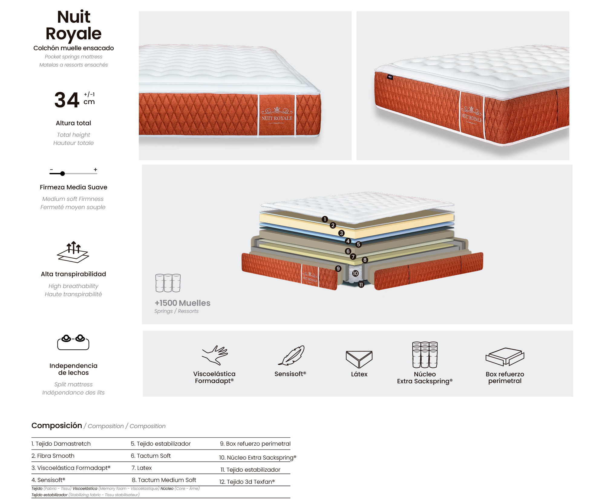 A diferencia de los colchones estándar, el Nuit Royale incorpora un sistema de núcleo superior que marca una clara diferencia en confort y rendimiento.