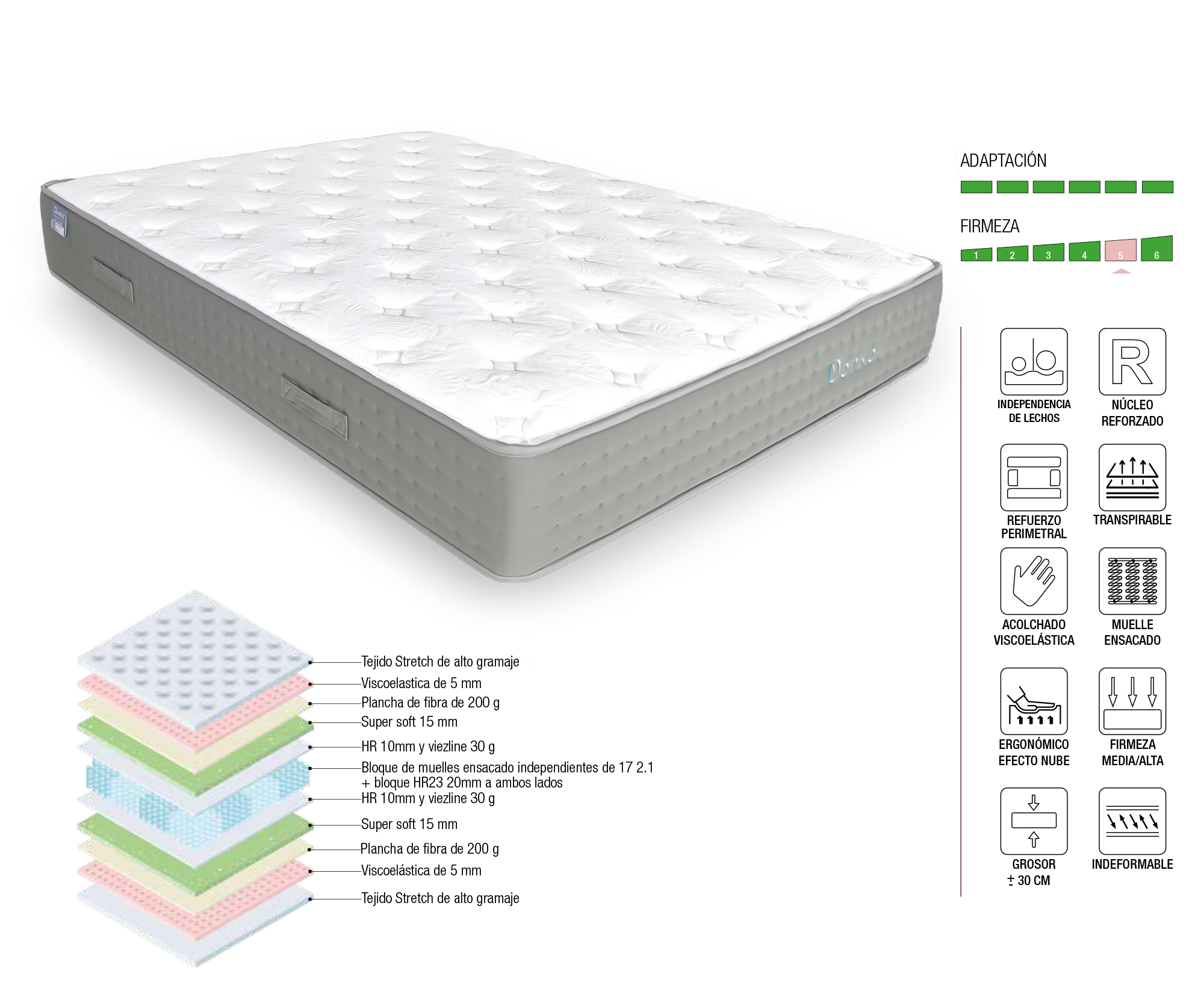 Firmeza adaptable: Capa de alta densidad para soporte duradero sin perder confort.