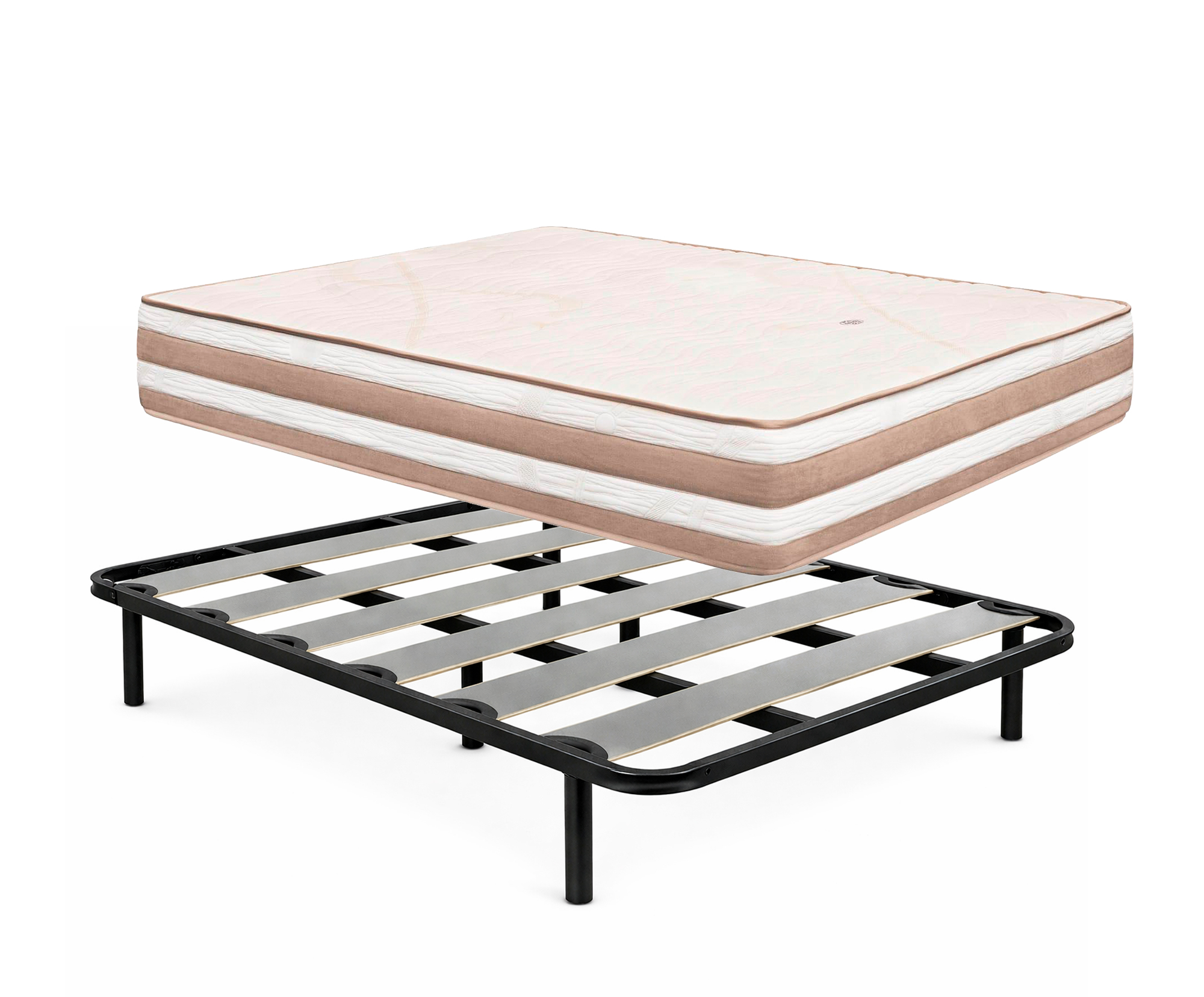 - Base con láminas de madera o metal, dependiendo del modelo, que proporcionan un soporte uniforme al colchón.