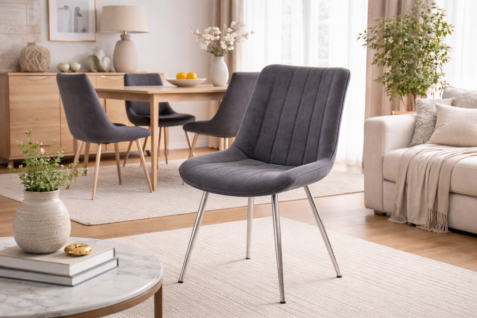 La Silla Altamira es la combinación perfecta entre diseño sofisticado y funcionalidad diaria. Gracias a su tapizado técnico de alta calidad y su estética de líneas verticales, se convierte en una pieza clave para comedores que buscan un aire moderno sin renunciar a la calidez del textil.